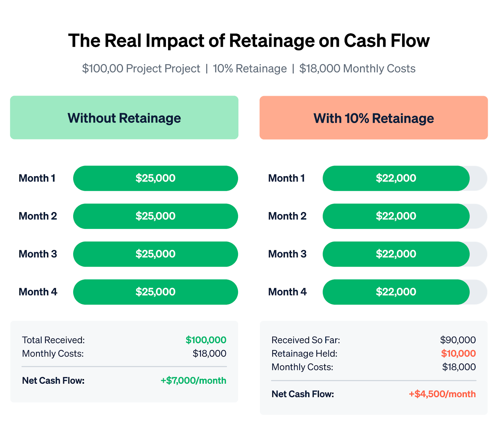 Profit margins on construction projects are already thin, sometimes running as low as 5-10%. Retainage rates can easily equal (or surpass) the entire project’s profit margin.